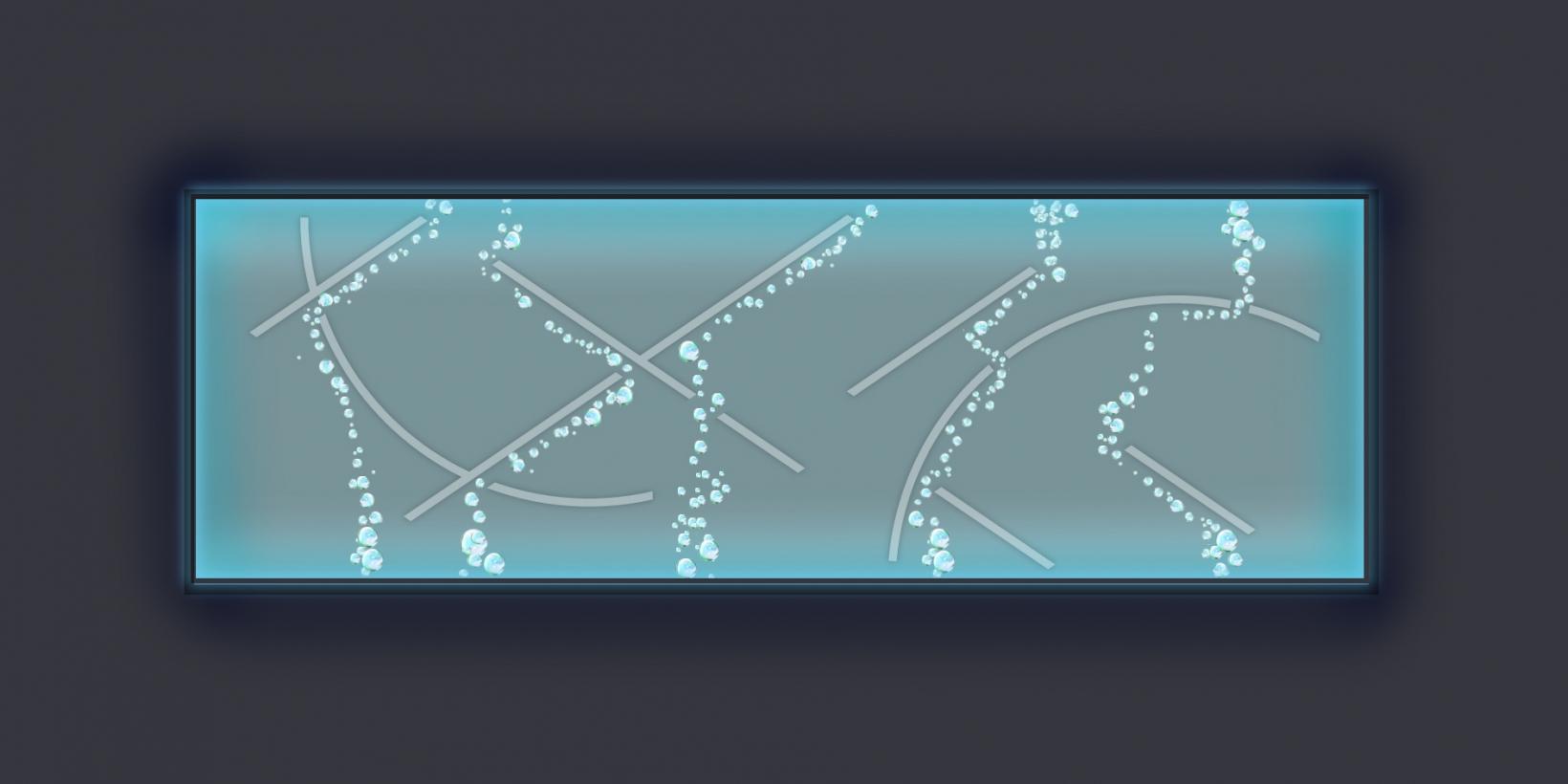 ​Wall mounted aquatic light, outstanding in its conception, it accompanies our thoughts with its small bubbles in perpetual movement. Unconventional, yet discrete and elegant, it can be seen in both residencies and professional settings.